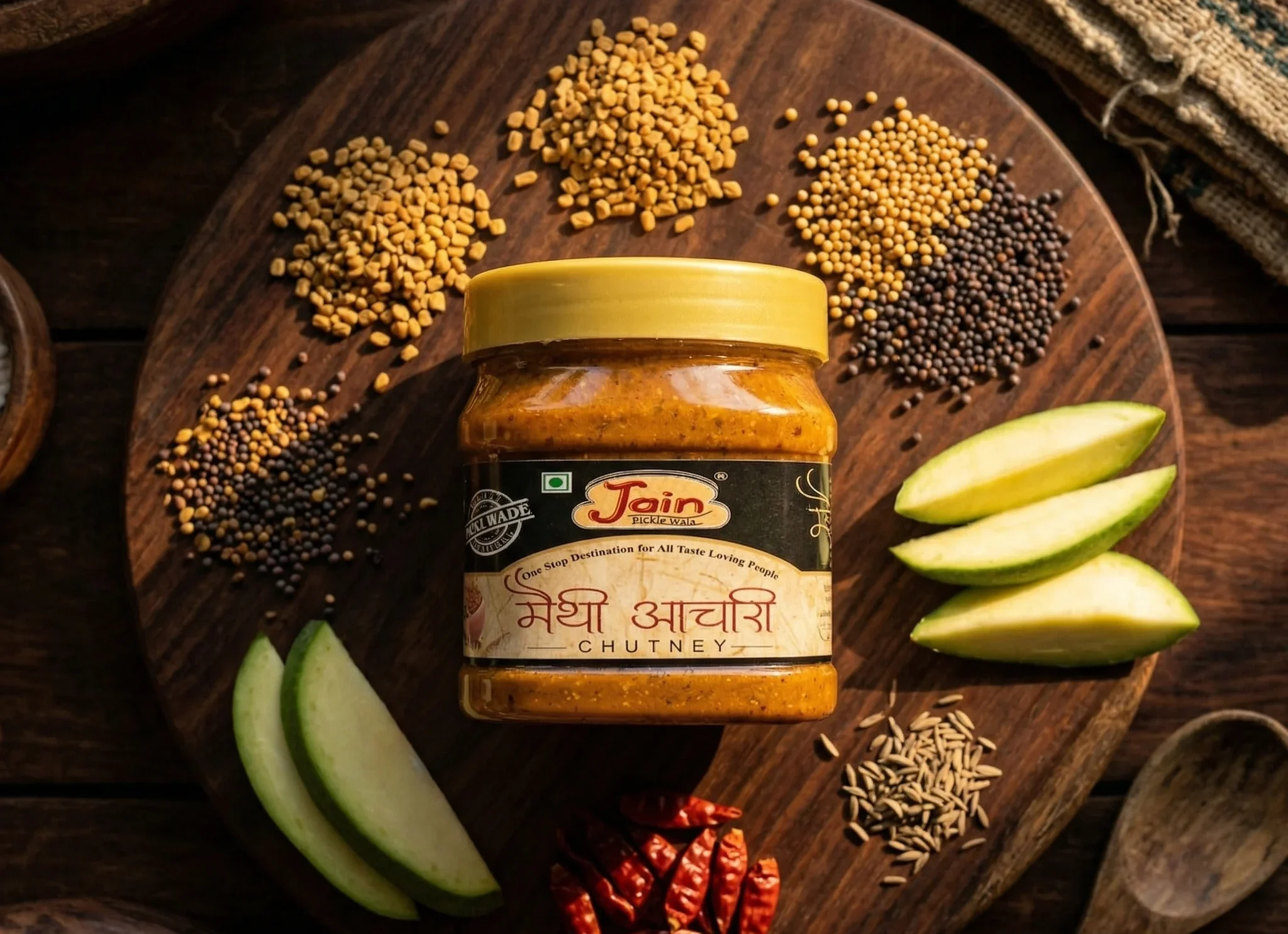 Discover a unique blend of flavors with our Methi Achari Chutney, made using aromatic fenugreek (methi), mango and traditional Indian pickling spices. This chutney brings together the slight bitterness of methi with a rich tangy and spicy achari taste, creating a bold and unforgettable flavor profile.