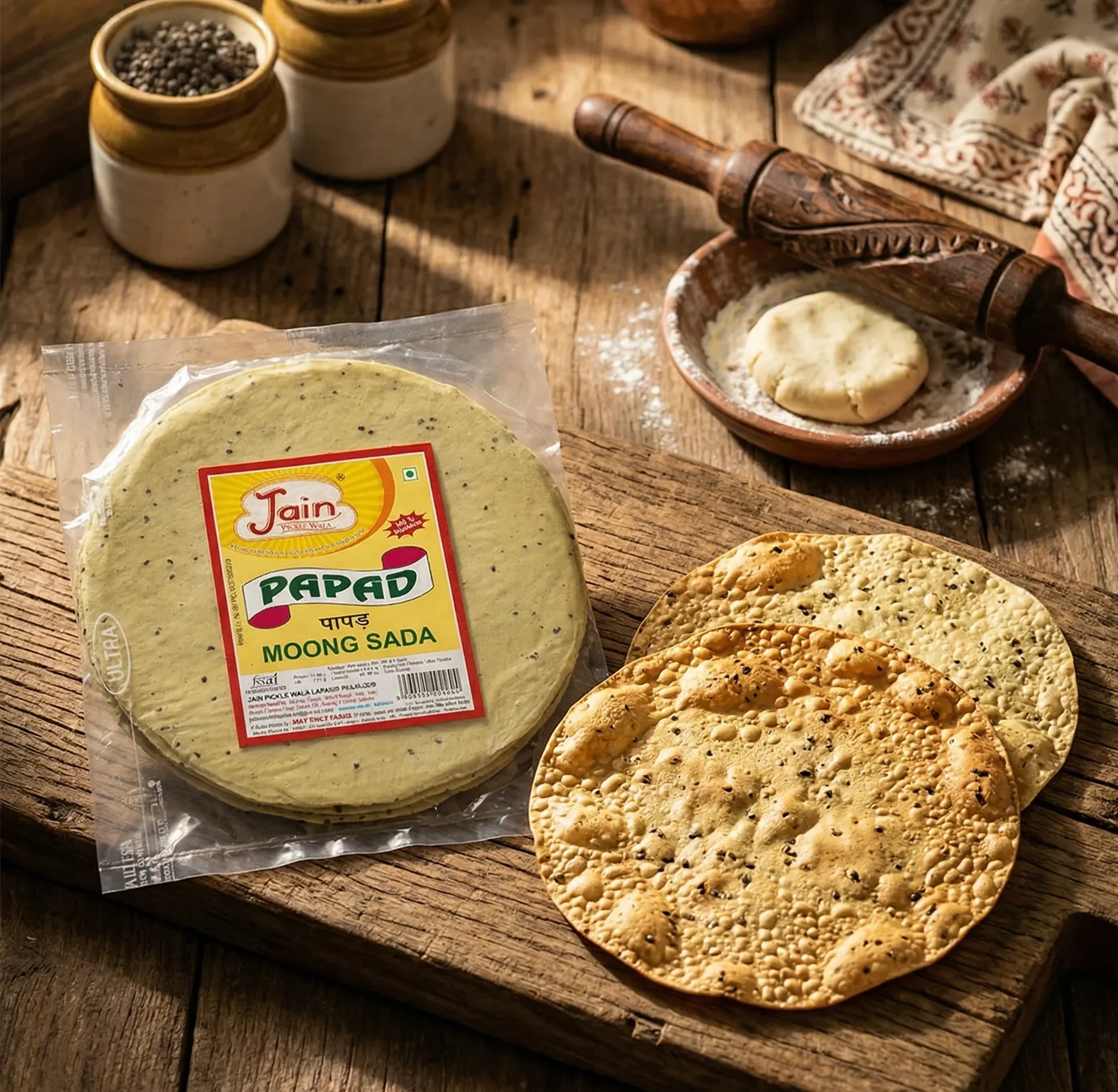 At Jain Pickle Wala, we ensure our papads are made with quality ingredients, no artificial preservatives, and a focus on taste with purity.